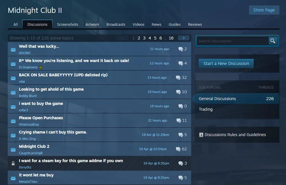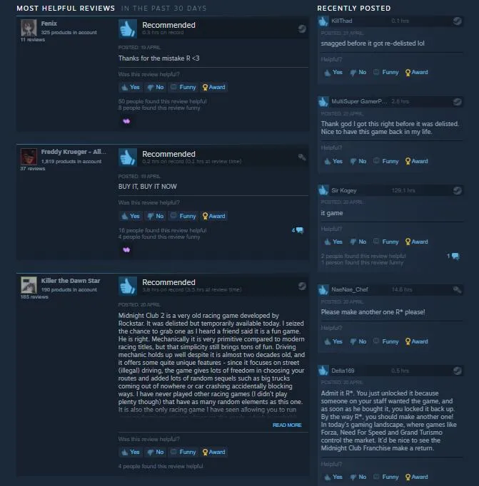 Гра Midnight Club II повернулася у Steam всього на годину, бо розробники встигли розв'язати й цю проблему достатньо швидко. Щоправда, чимало геймерів встигло придбати майже ексклюзивний проєкт. Онлайн виріс одразу до показника у 39 гравців, а також з'явилося чимало позитивних рецензій та нових тем на форумі гри. Гравці відзначали, що відеогру потрібно придбати всім якнайшвидше, поки доступ знову не закрили. Найцікавіше, що подібні теми з'являються на форумі й зараз, а гравці просять додати відеогру у крамницю знову.