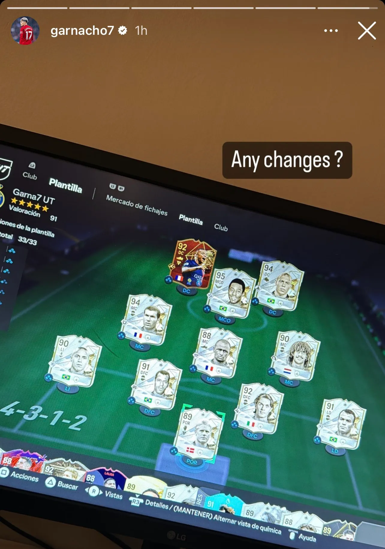 У вінгера МЮ, Алехандро Гарначо, стартова одинадцятка майже повністю складається з легенд футболу. Тут є такі імена як Пеле, Зідан, Гулліт, Мальдіні та інші.