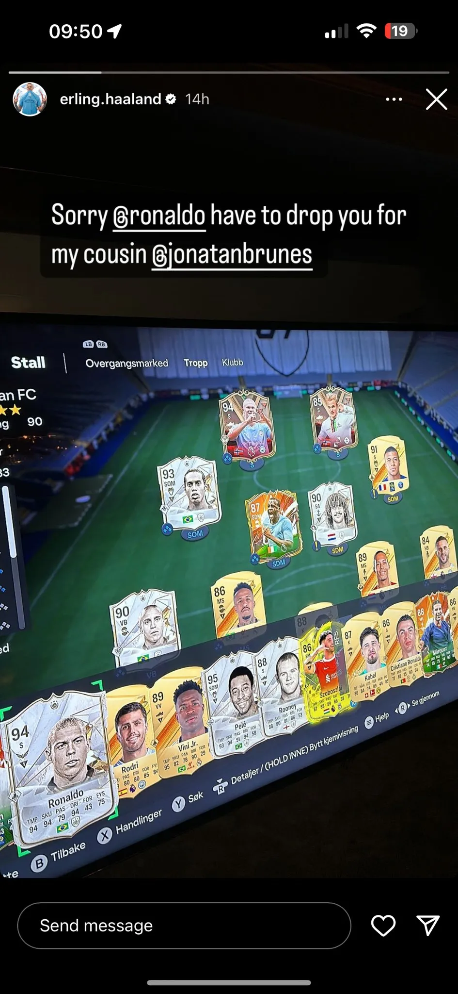 Цікавим є також дует нападників "вікінга", де Ерлінг скромно поставив себе коханого, а у пару додав свого двоюрідного брата Джонатана Браут Брунеса, який посадив на лаву для запасних самого "зубастика".