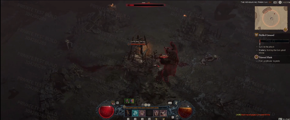 Гравець-варвар виконує декілька квестів, демонструючи як потужні здібності класів, так і дерево навичок класу. Деякі середовища виглядають не повністю завершеними – що цілком природно, враховуючи, що до повного випуску гри ще залишається деякий час.