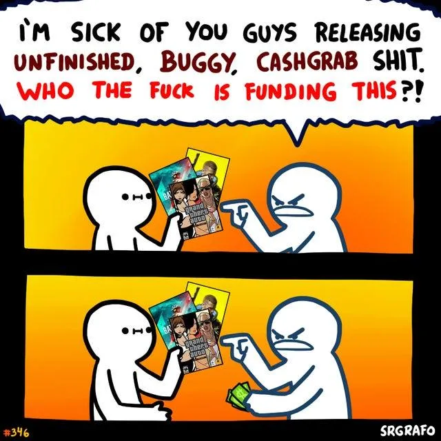 Мені набридло, що ви, хлопці, випускаєте незакінчені та забаговані ігри, які створені лише для легкої наживи. До біса, хто це все фінансує?!
