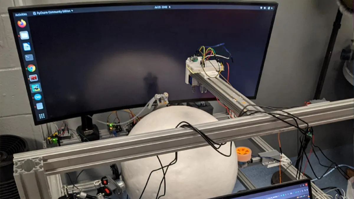 Отож "робоче місце" пацючків має полістиролову кульку, підтримувану датчиками руху, над якою один із них підвішується за допомогою спеціального джгута. Таким чином кулька реагує на рухи лапок піддослідного, а перед ним розташовується вигнутий монітор ПК, на якому власне і зображається гра.