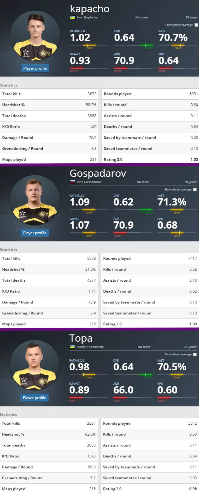 Совсем недавно на официальном сайте организации появилась информация о том, что было принято решение выставить на трансфер трех игроков юниорского состава NAVI Junior по CS: GO. В список попали Кирилл "Gospadarov" Госпадаров, Иван "kapacho" Копленко и Алексей "Topa" Топчиенко. Информацию, в интервью официальному каналу NAVI Junior на YouTube, также подтвердил тренер академии Амиран "ami" Рехвиашвили.