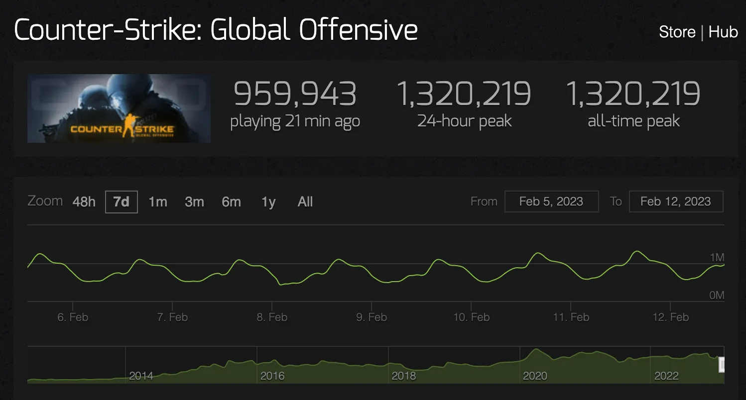 Пиковый онлайн в CS:GO / скриншот со Steam Charts