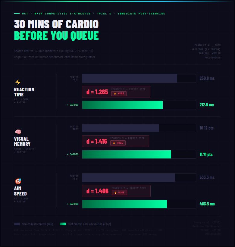 Поэтому аэробные упражнения умеренной интенсивности перед игрой могут значительно улучшить ваши результаты в соревновательных видеоиграх вроде Counter-Strike 2.