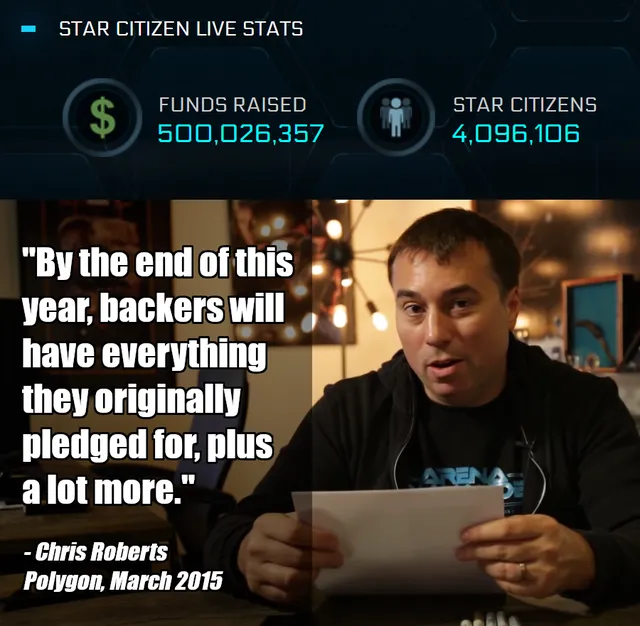 "До конца этого года, спонсоры будут иметь все, о чем они мечтали с самого начала и немного больше", – Крис Робертс для Polygon, март 2015