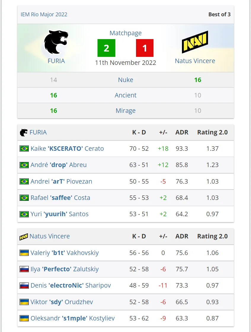 Следует отметить, что этот матч, пожалуй, стал одним из худших в карьере для главной звезды CS:GO – Александра "s1mple" Костылева, ведь тот закончил противостояние с рейтингом 0.87, что является самым плохим показателем среди всех игроков на сервере.