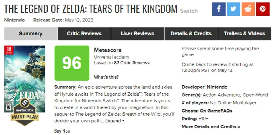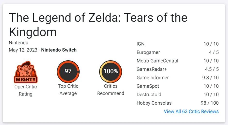 Продовження, не побоїмось цього слова, легендарної Breath of the Wild вже перегнало свою попередницю за оцінками, а деякі критики та журналісти називають Tears of the Kingdom "найкращою грою покоління".