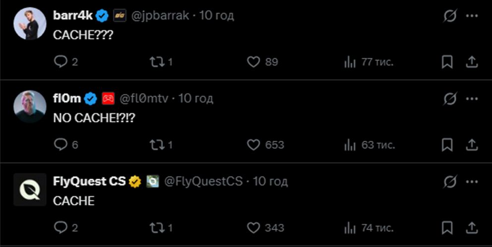 Кіберспортсмени та цілі команди здивовані відсутністю Cache / Скриншот з X